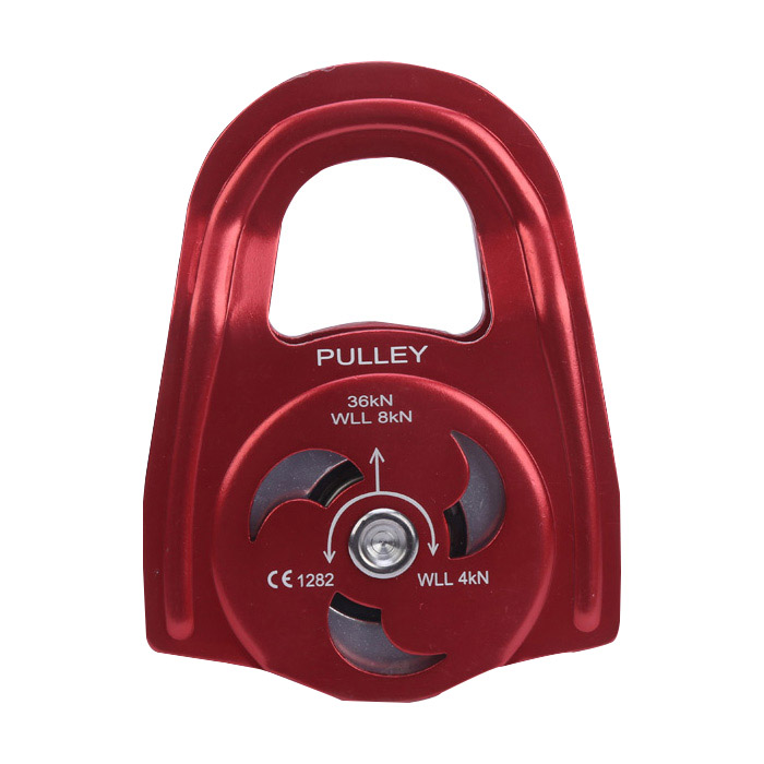 1) The side plate of pulley is designed with knot slot,so that self-braking system of prusik knot can be established on pulley rope.