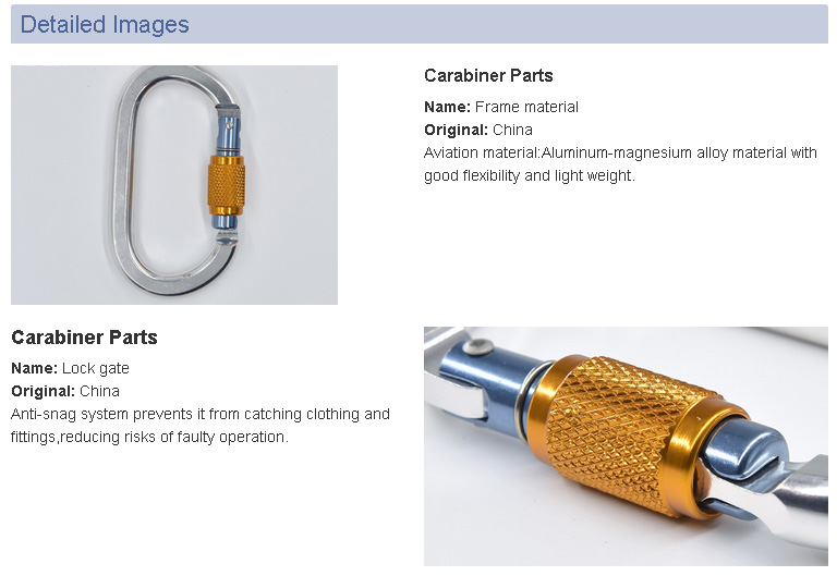 1) Axial surface of oval-shaped lock has a minimum abrasion for device when connecting widely spaced metal part,like pulley,upper part of ascender,rope clamp etc.
